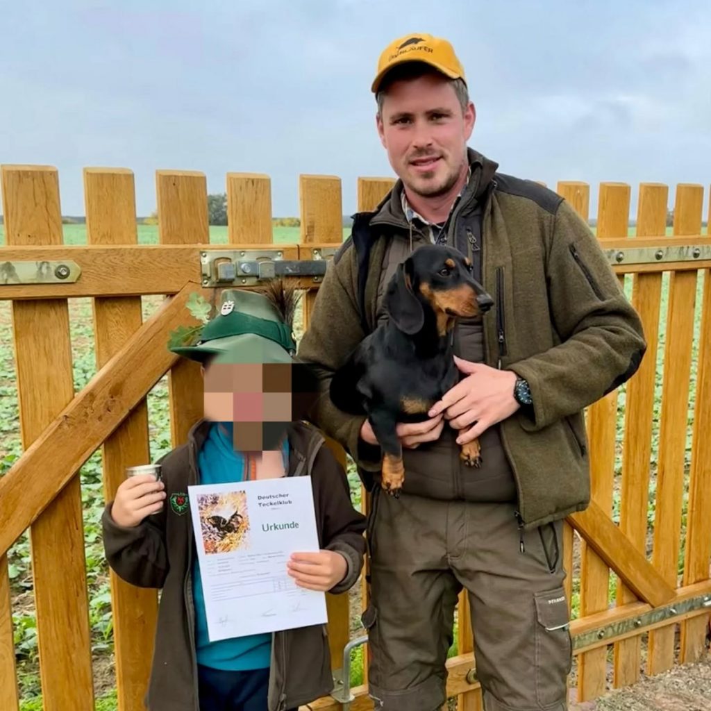 Mythos Nero vom Brexbach FCI , der erst 15 mon junge Rüde erarbeitete sich einen 1. Preis und volle Punktzahl auf der Fährtenschuhprüfung !